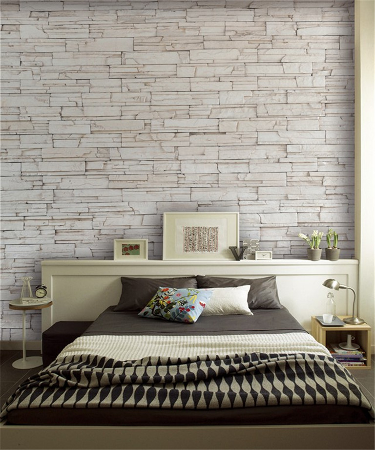 Подойдут более нейтральные и спокойные объемные изображения. Отлично будут смотреться обои, имитирующие дерево, бамбук, кирпич или камень.