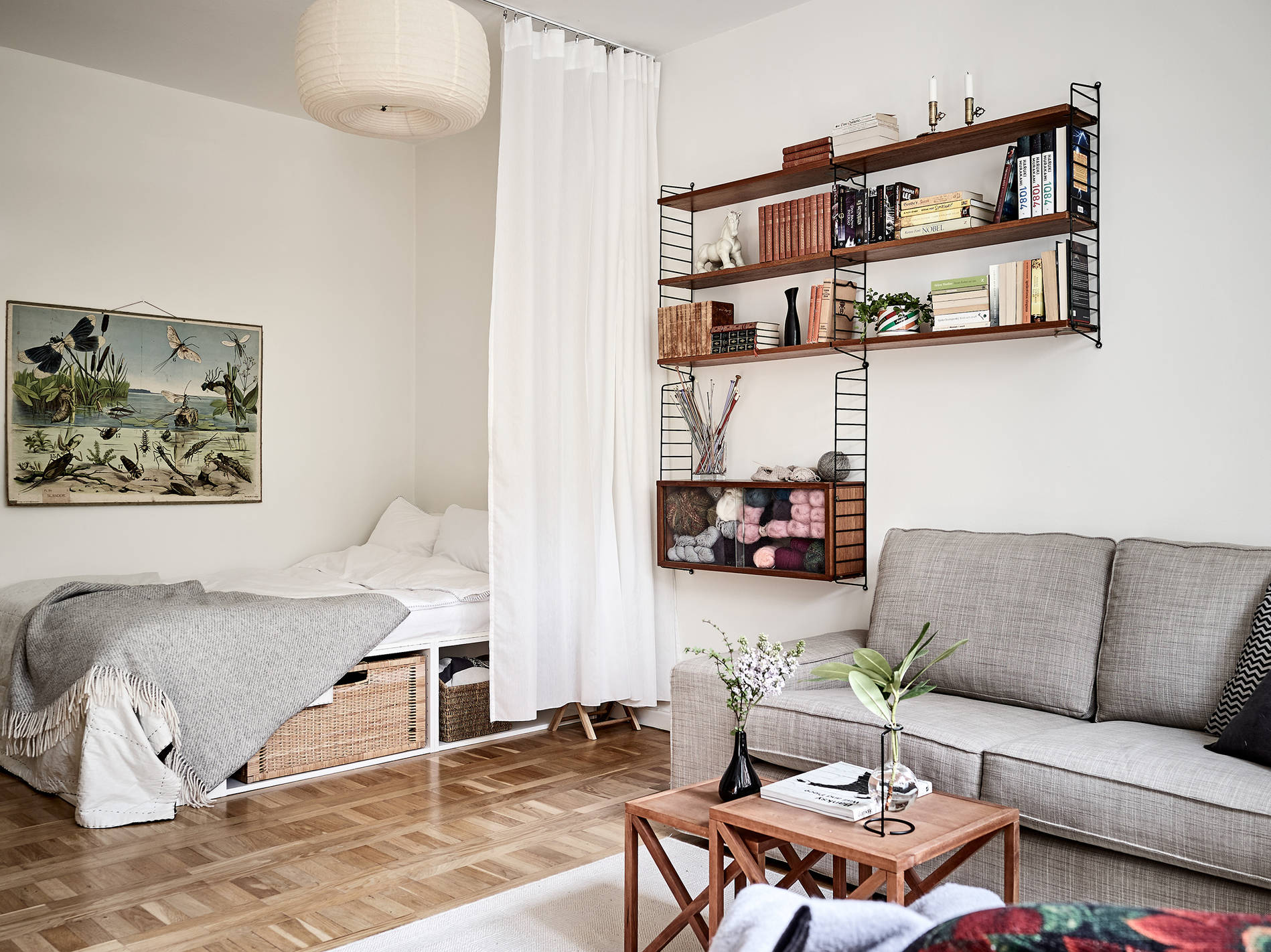Внешность обманчива. Если бы вы посмотрели на крошечную площадь в 17,3 квадратных метра, вы могли бы подумать, что здесь нет места для выделения четких зон для занятий, сна и гардероба, а также полностью оборудованной кухни и ванной комнаты.