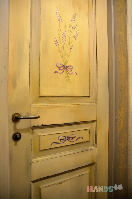 Двери, поскрытые морилкойУзоры с трафаретом