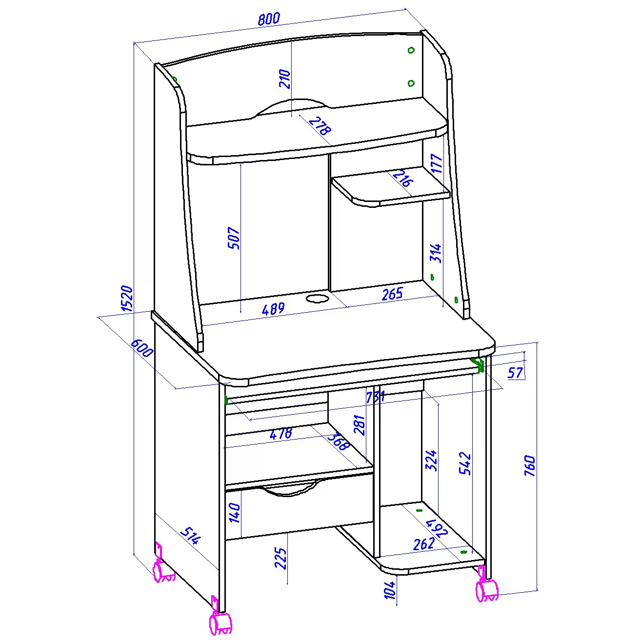 Многофункциональная и удобная конструкция со стеллажом, позволяет компенсировать неимение настенных полочек или шкафчиков в помещении и создать комфортный рабочий уголок.
