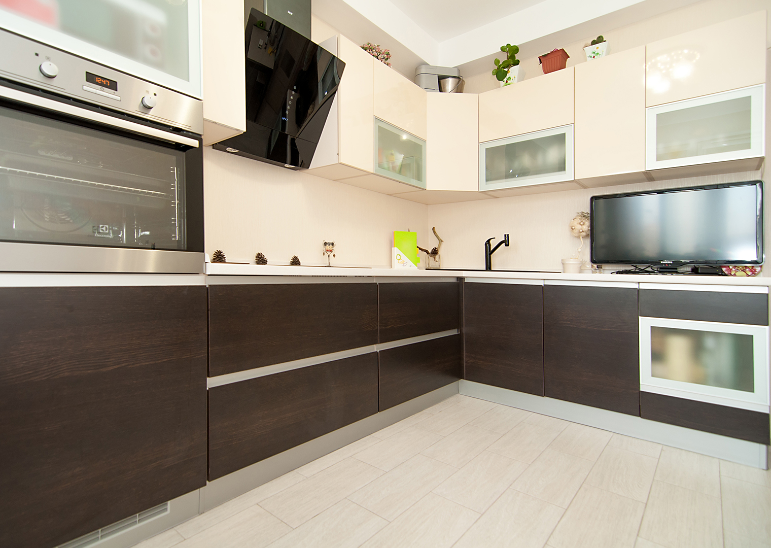 Кухонный гарнитур светлый верх темный низ
