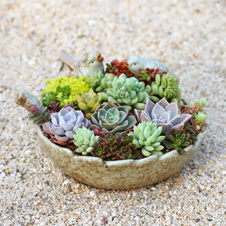 Плоские горшки для суккулентов хороши в тех случаях, когда планируется создать небольшую композицию из разнообразных сортов и видов растений.