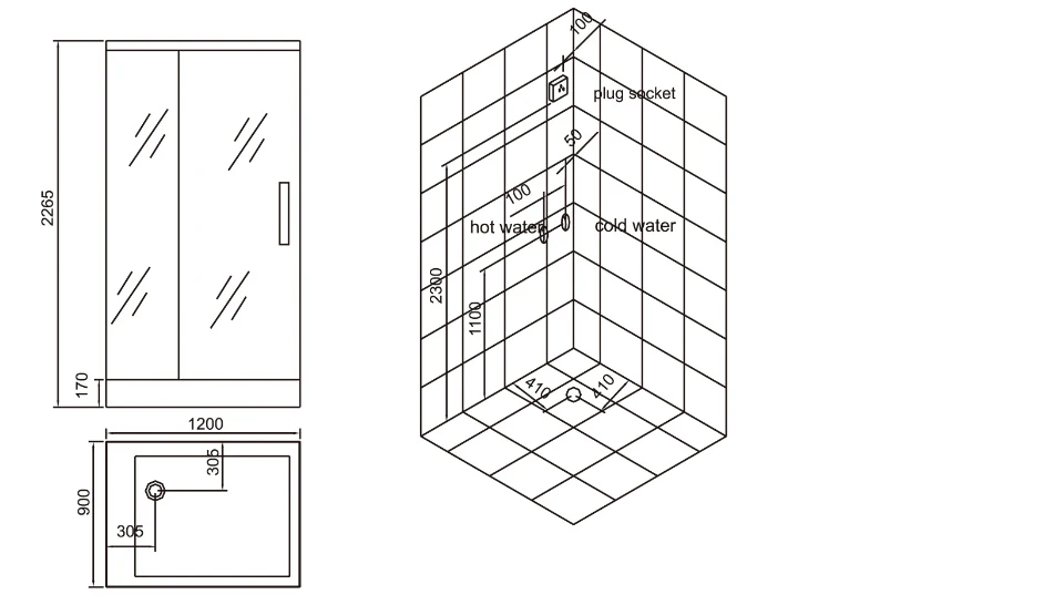Вот разбивка некоторых стандартных размеров душевой кабины.