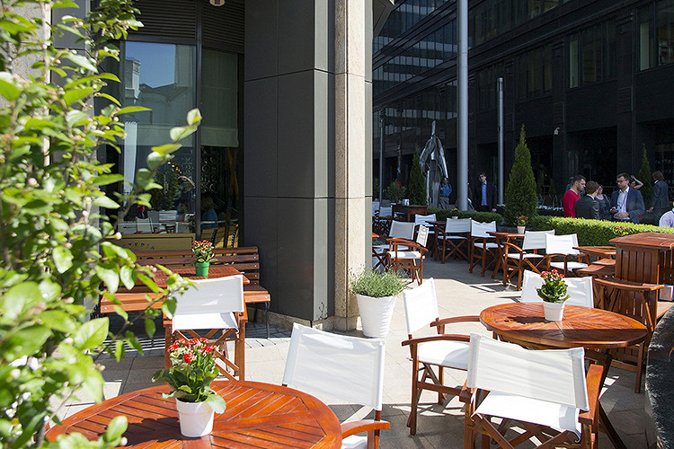В бизнес-центре «Белая площадиь» все лето будет работать круглосуточная веранда Osteria della Piazza Bianca на 120 мест. С семи утра до полудня тут готовят завтраки, в остальное время — итальянскую классику под руководством бренд-шефа Винченцо Дилилло.
