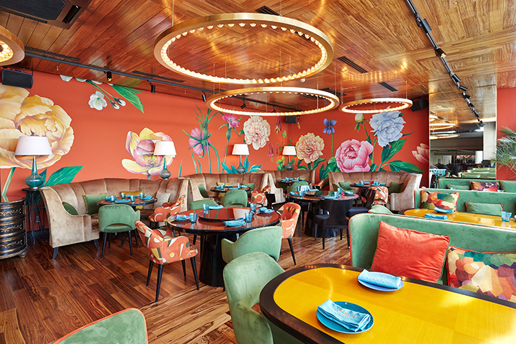 Двухэтажный яркий ресторан в Soho