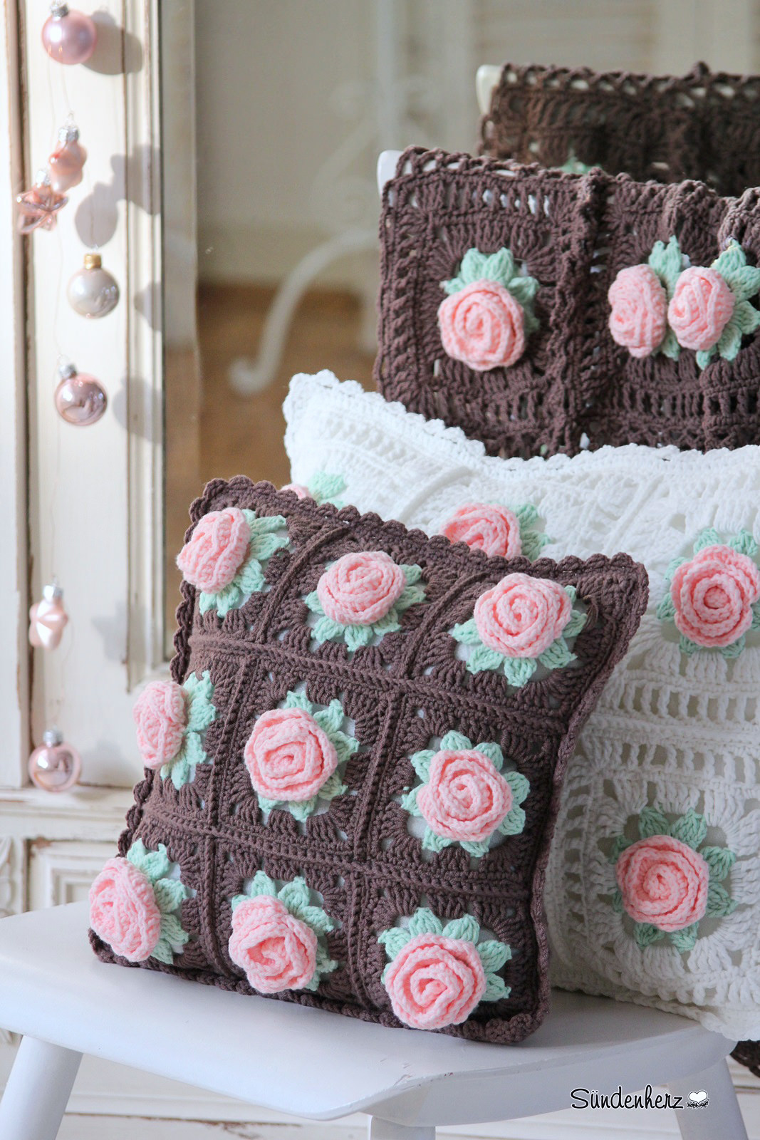 Совет: Готовую подушку украшают вязаными кружевами по контуру, цветами или бантами, также выполненными крючком.